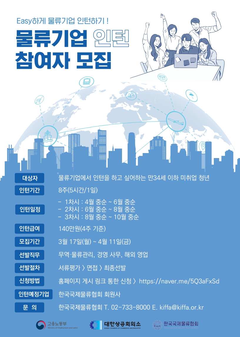 □ 대상자 : 물류기업에서 인턴을 하고 싶어하는 만 34세 이하 청년