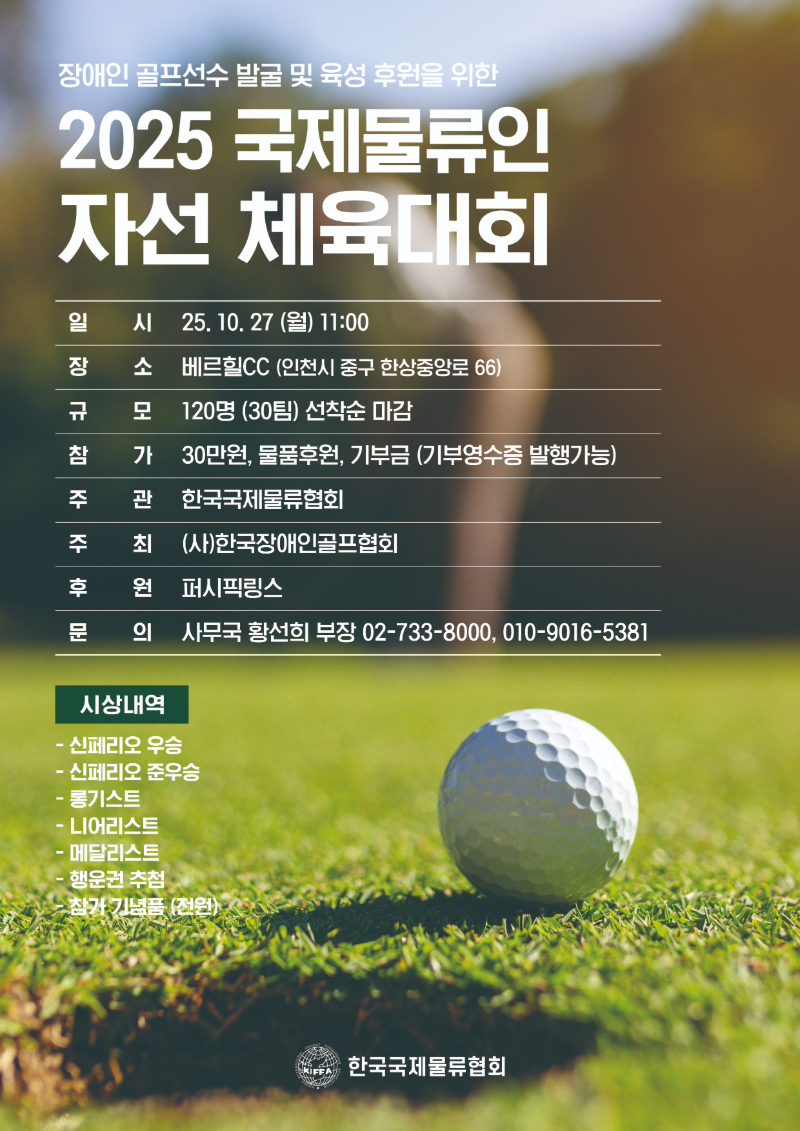 물류기업 등과 함께 장애인 골프선수 발굴 및 육성 후원을 위한 골프대회를 다음과 같이 개최하고자 합니다.