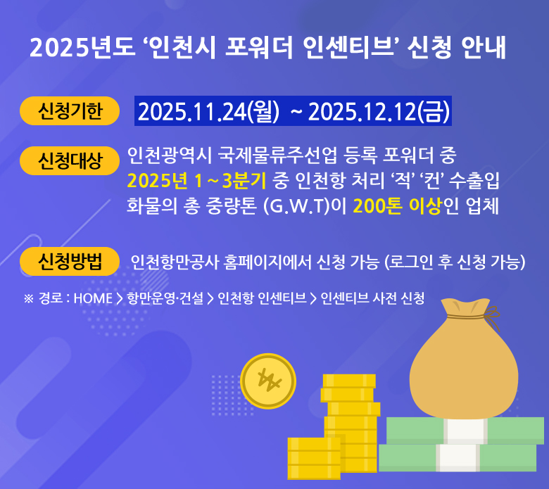 | 인천항만공사 2025년 인천시 포워더 인센티브 신청 안내 | ||||||
