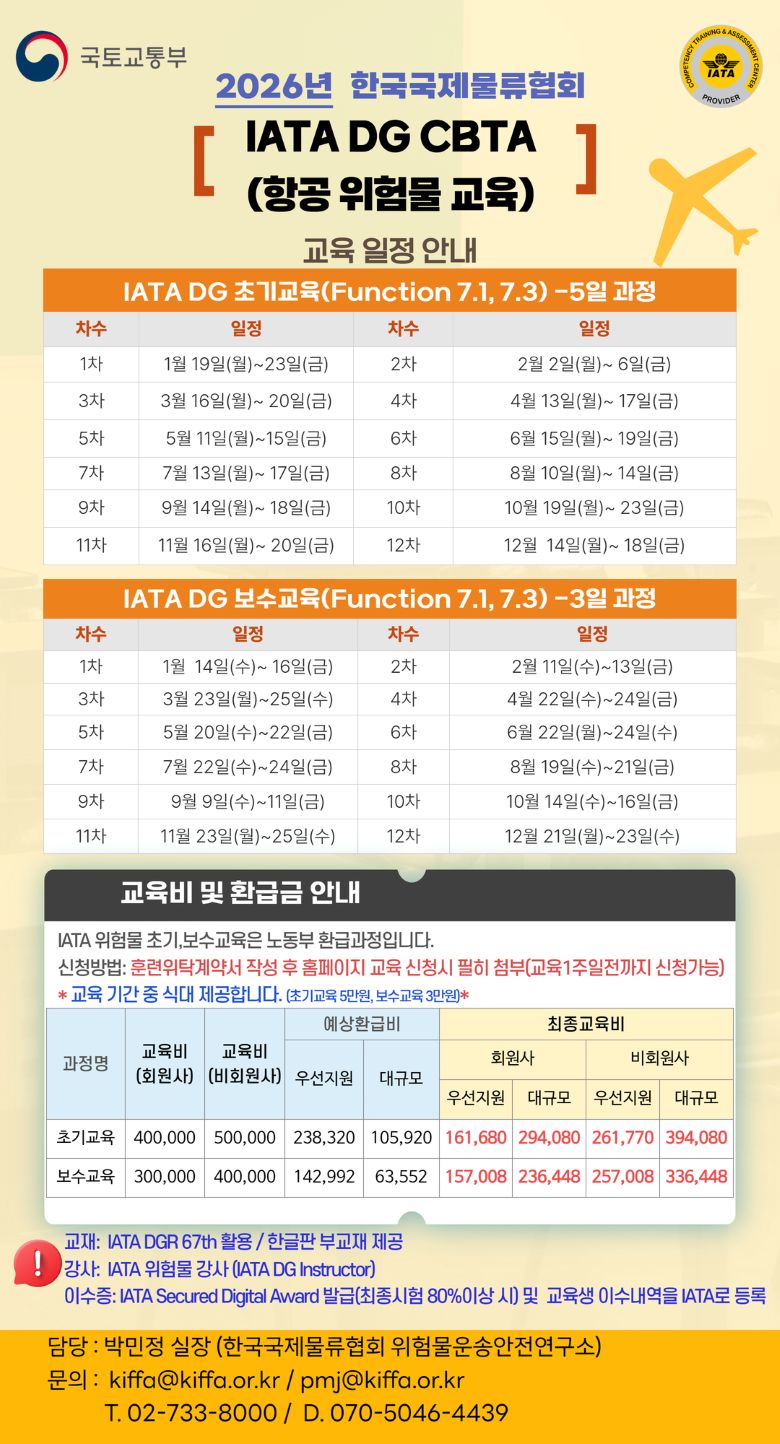회원사 30만원, 비회원사 40만원 * 위험물 교육비 계좌 안내* 하나은행 272-910030-25904/ 한국국제물류주선업협회 |