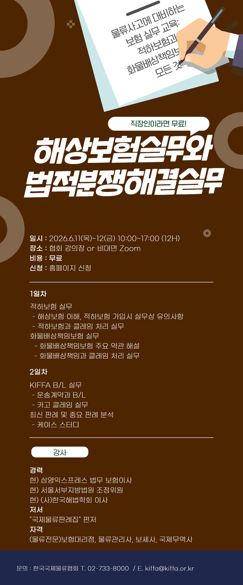| 교육장 | 대면 : 한국국제물류협회 연수실 비대면 : 학습자 한하여 별도 링크 송부 |