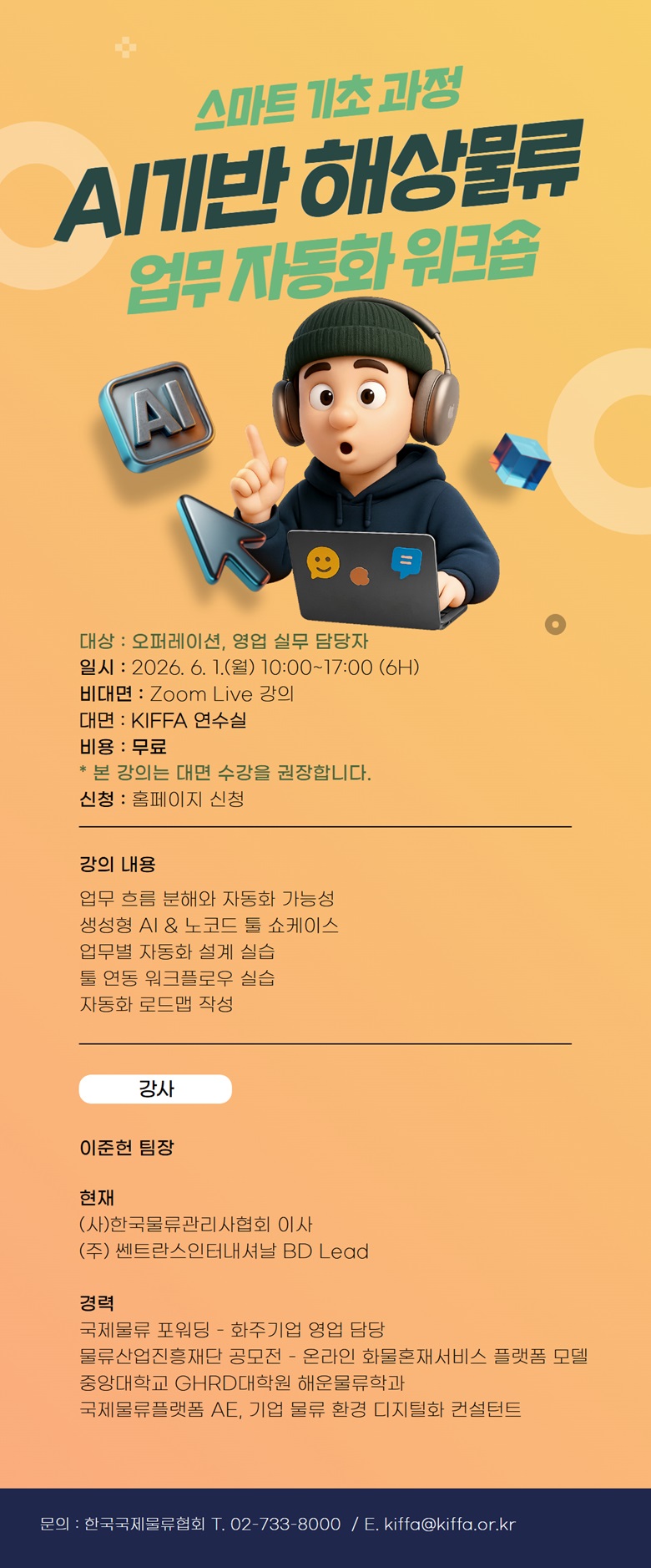 | 교육장 | 대면 : KIFFA 강의실 비대면 : 학습자 한하여 별도 링크 송부 |