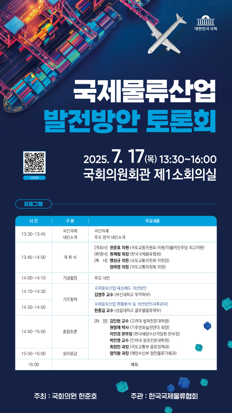 필요하다고 생각하여, 국제물류산업발전방안 토론회를 국회에서 개최하고자 합니다.