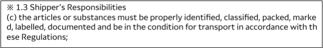 ※ IATA DGR 1.3 항에 명시된 화주의 책임 사항 이행 (첨부.1)