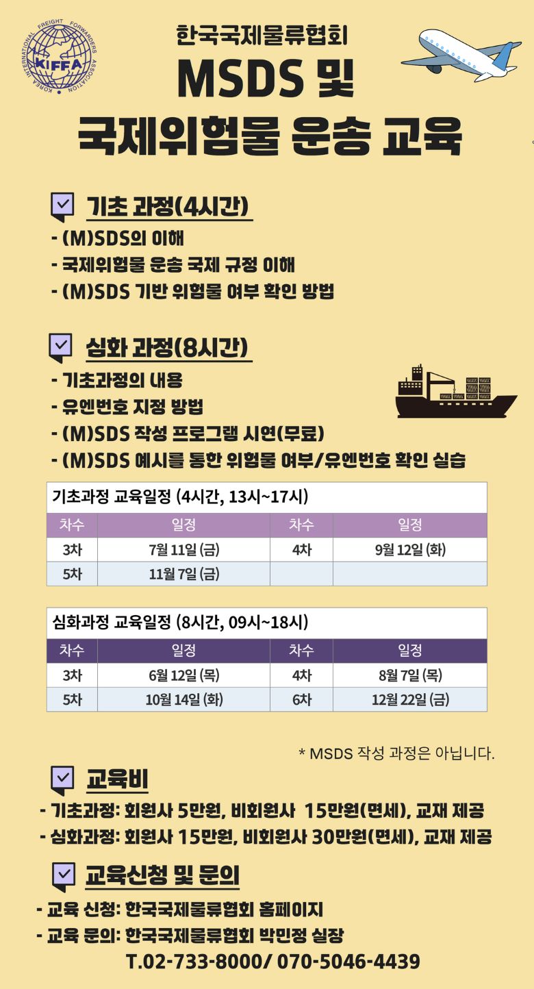 2025년도 물질안전보건자료(MSDS) 및 국제위험물운송 교육일정